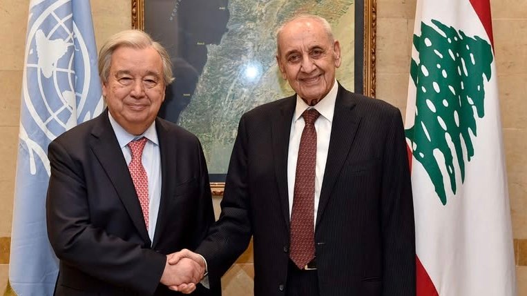 بدوره قال غوتيريش بعد اللقاء: “تشرفت بلقاء دولة رئيس مجلس النواب وعبرت له عن تضامن الامم المتحدة الكامل مع لبنان وشعبه في هذه اللحظة المهمة من تاريخه.
